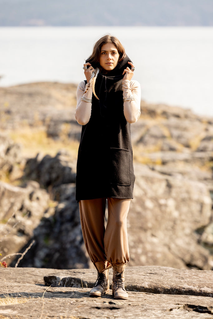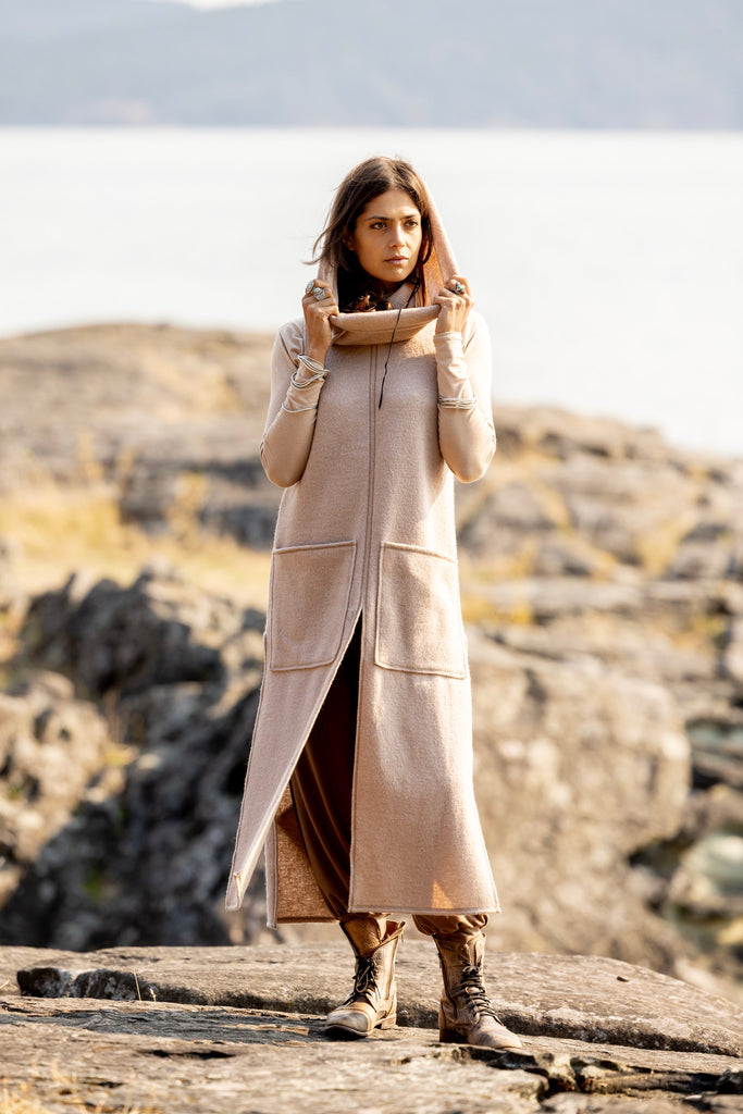 Wool is such a miracle fibre. It keeps us warm while being light. It regulates our energy and is water resistant. These pieces can be worn inside or as an outer layer.