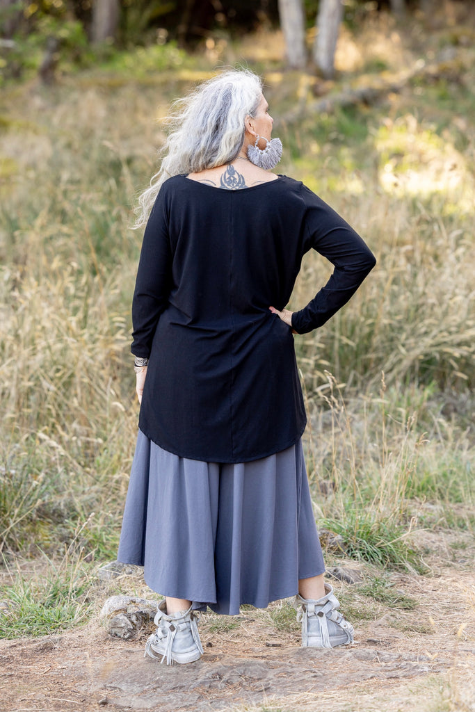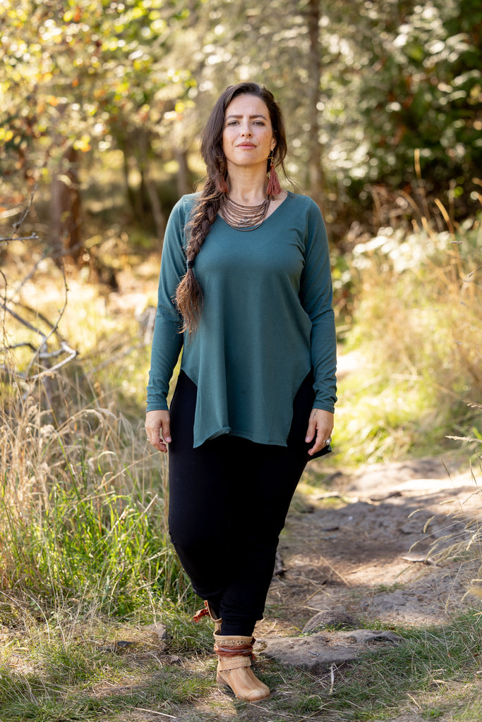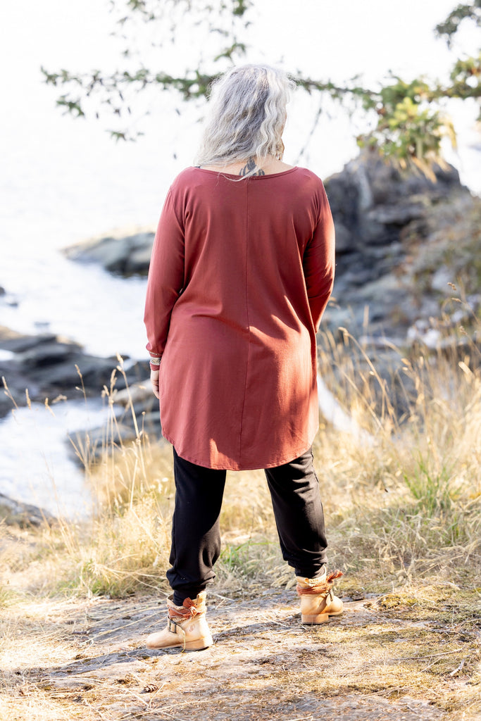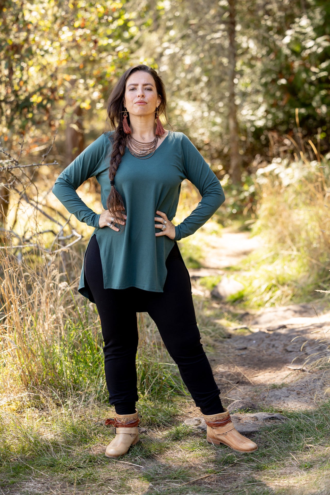 This is our long-sleeved and loose gardening inspired shirt, complete with side slits for easy movement and flow.