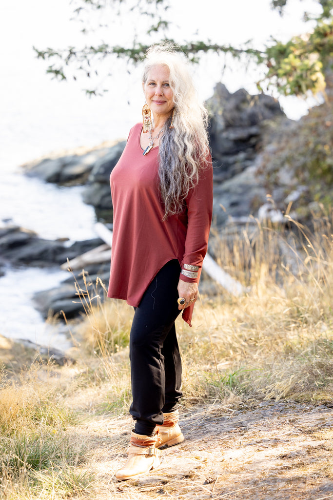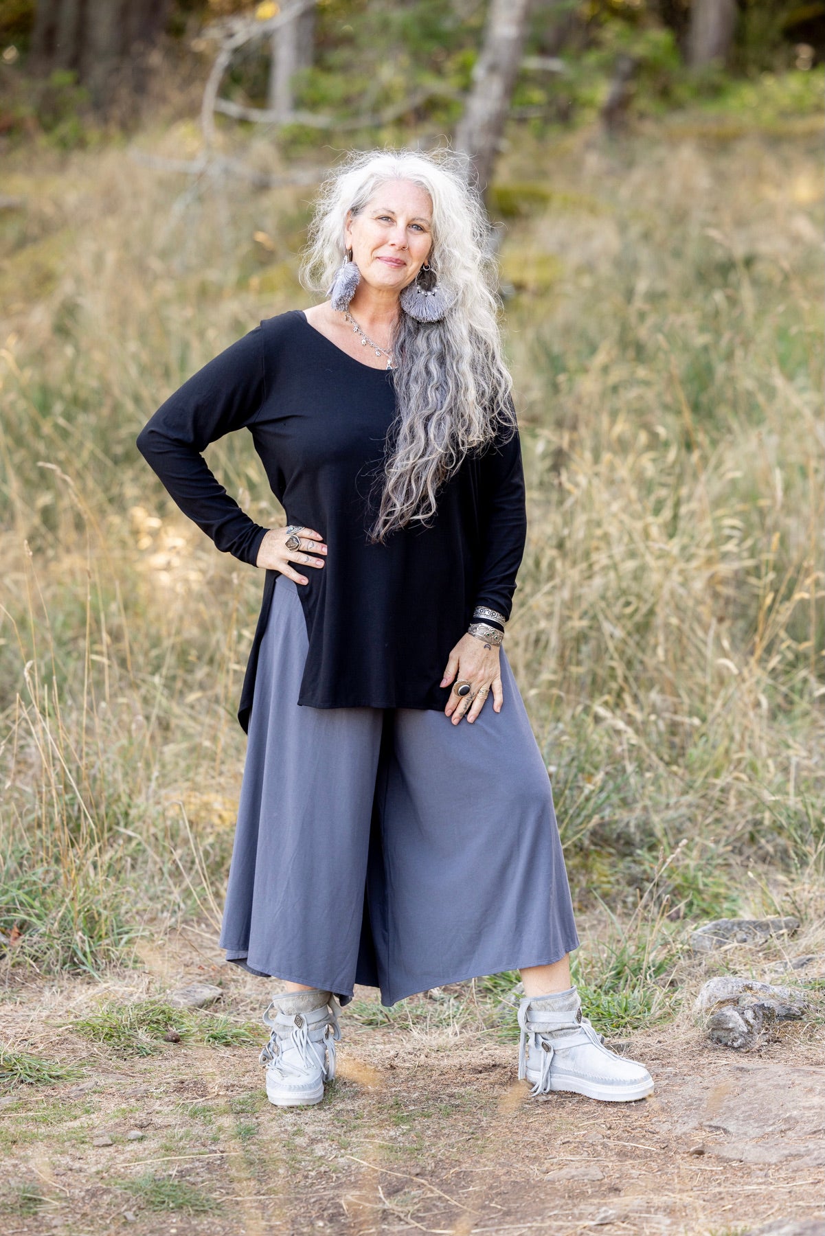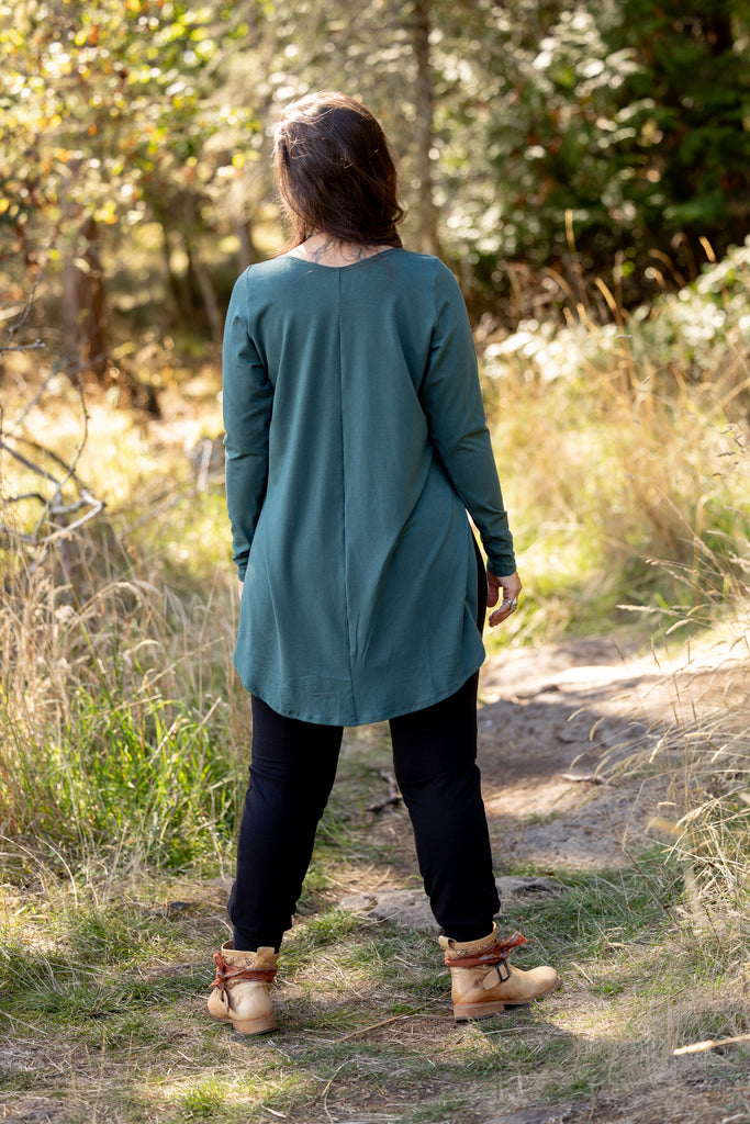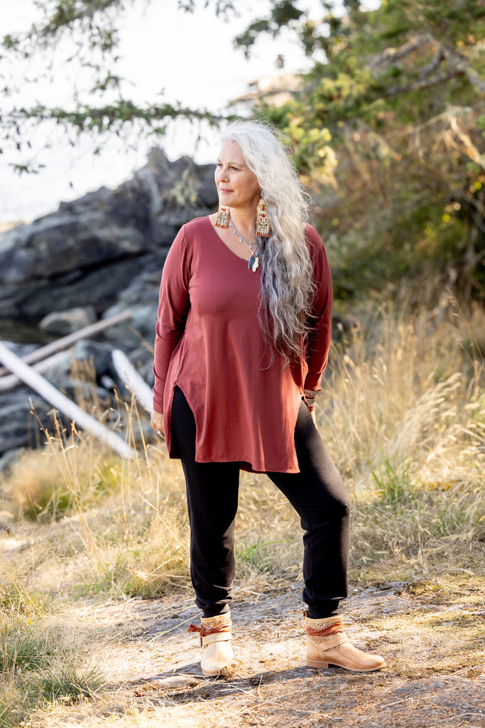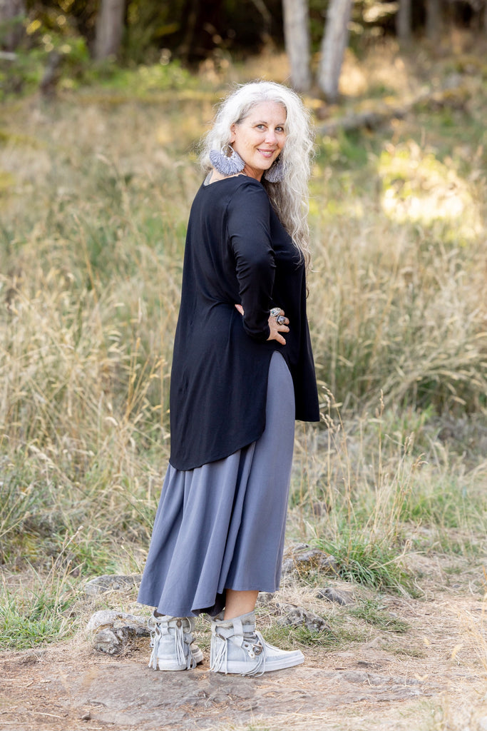 This is our long-sleeved and loose gardening inspired shirt, complete with side slits for easy movement and flow.