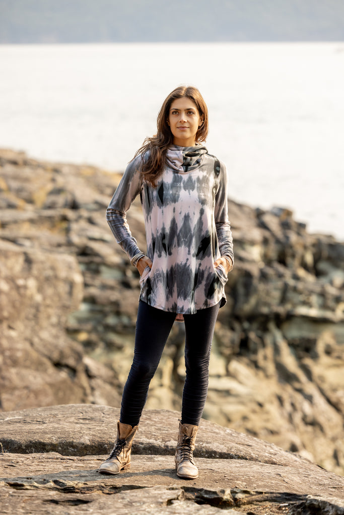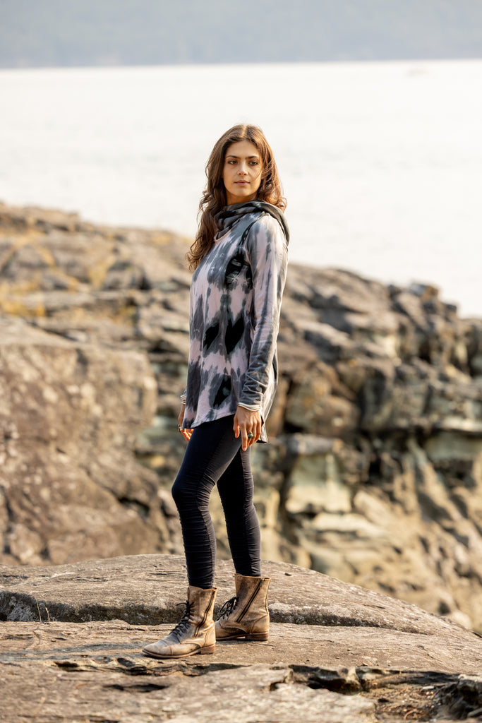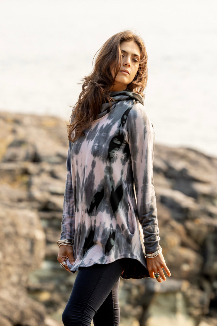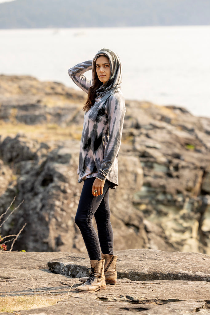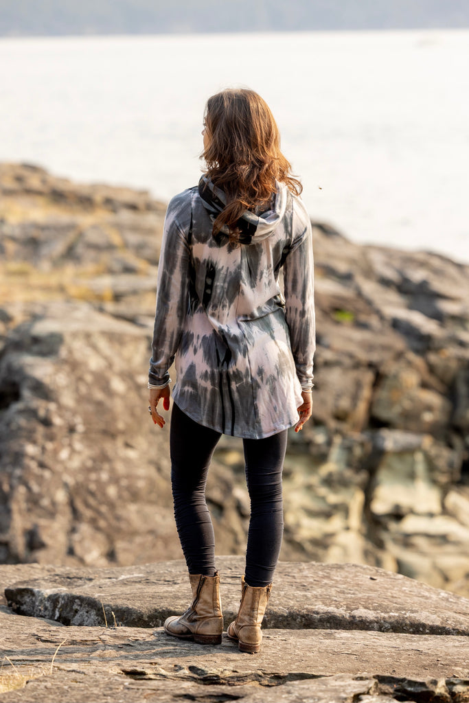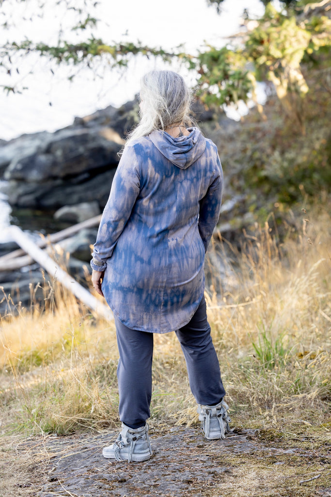 Hemlock Hoodie - Shibori - Misty Lavender & Black Shibori - heavier weight bamboo / XS Item will be made to order and will be shipped within 2 weeks time.