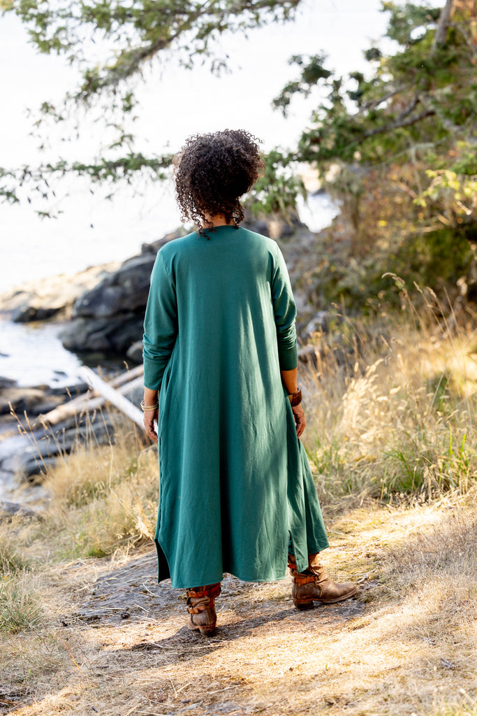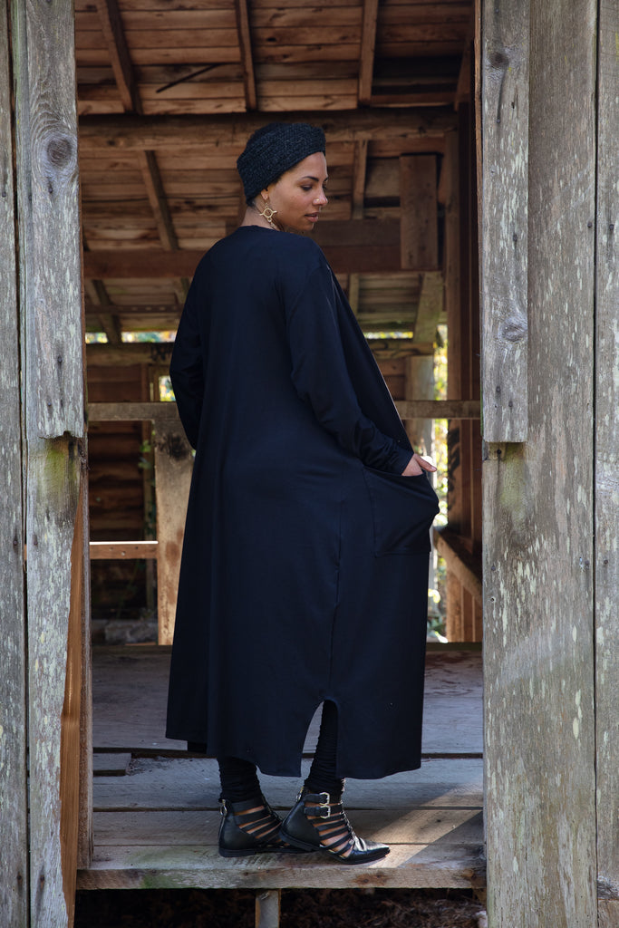 This jacket is a comfy outer layer great for going out in or wearing around the house. It's got epic length and a beautiful, luscious fabric that moves and flows with you!
