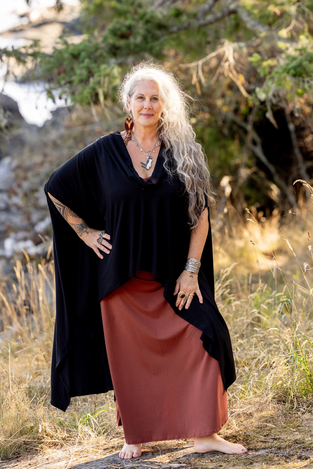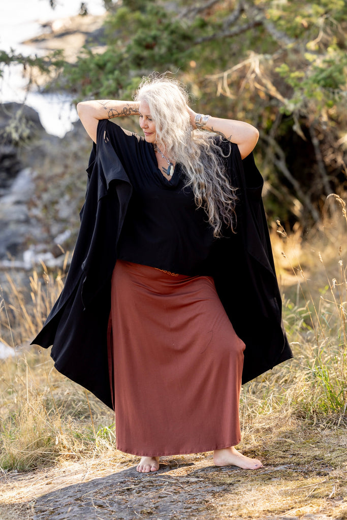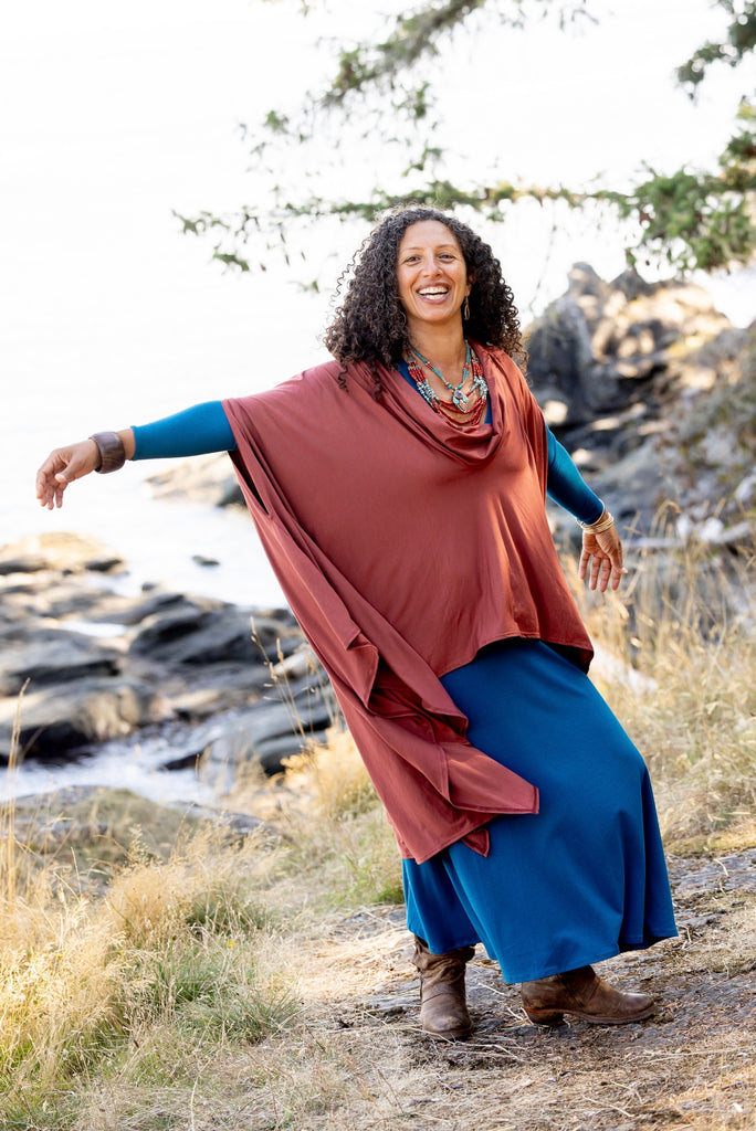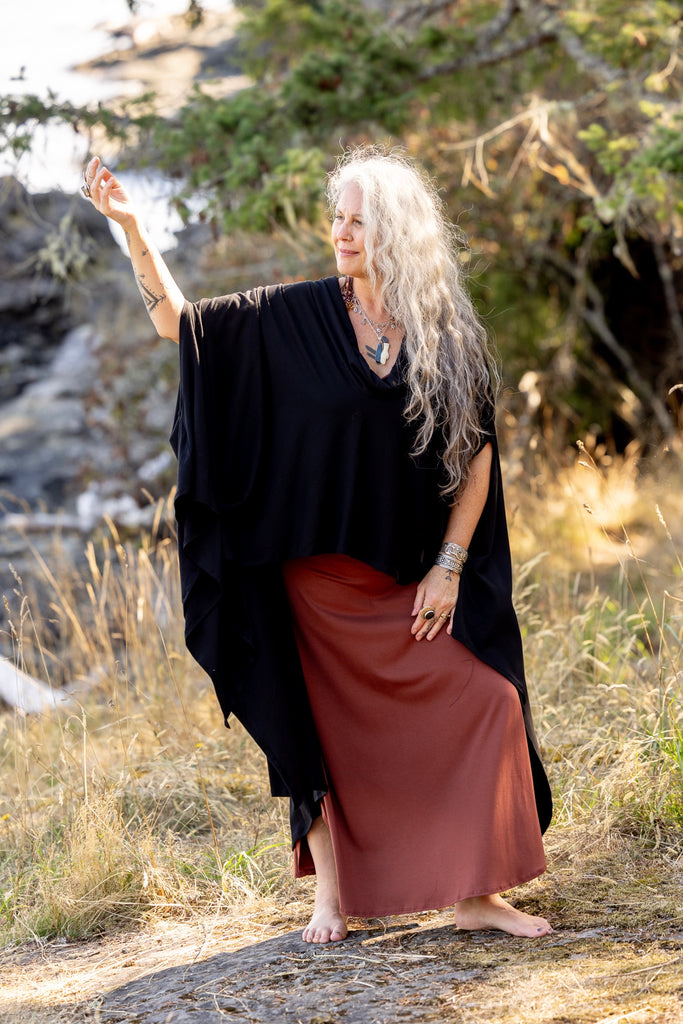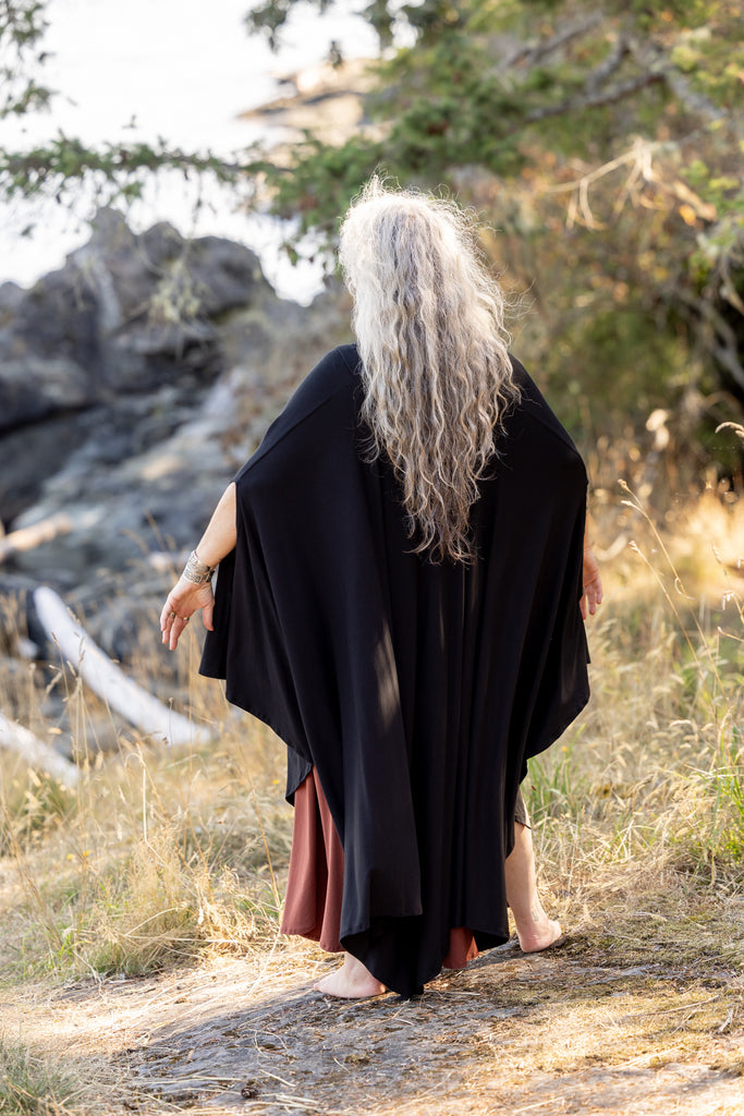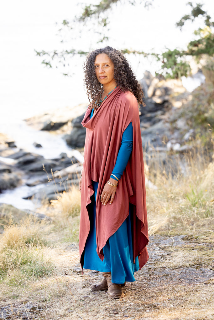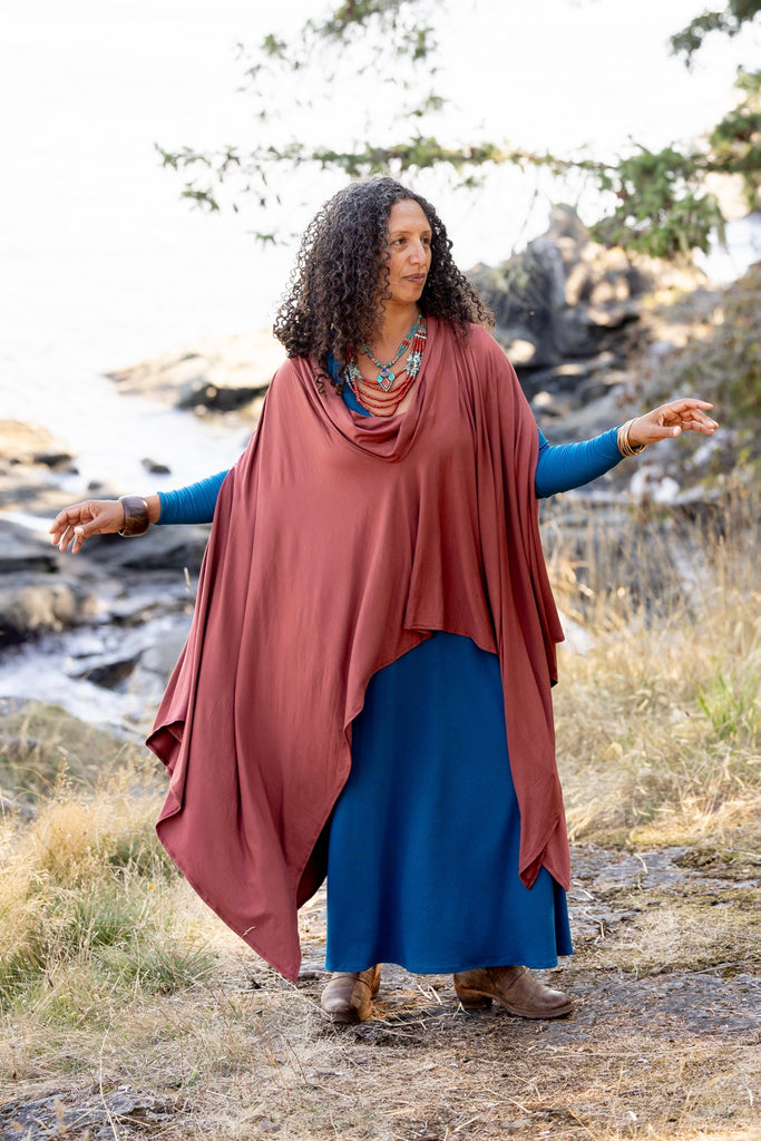 Our spectacular world poncho in bamboo... these beautiful ponchos are such an incredible layer. They can be worn inside or outside. They become that second skin.