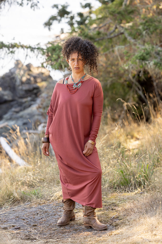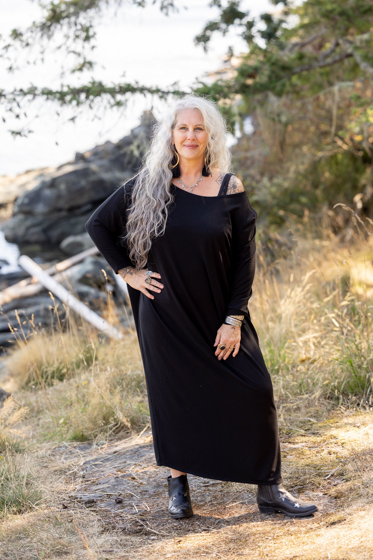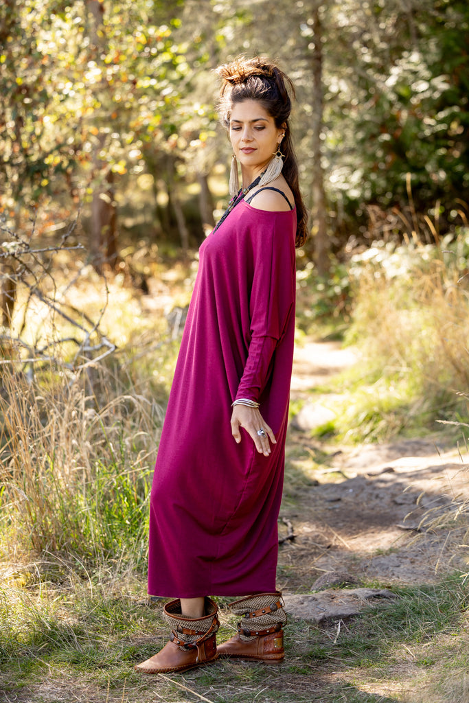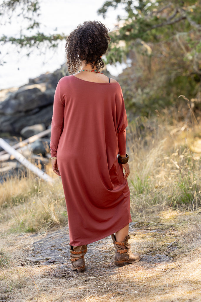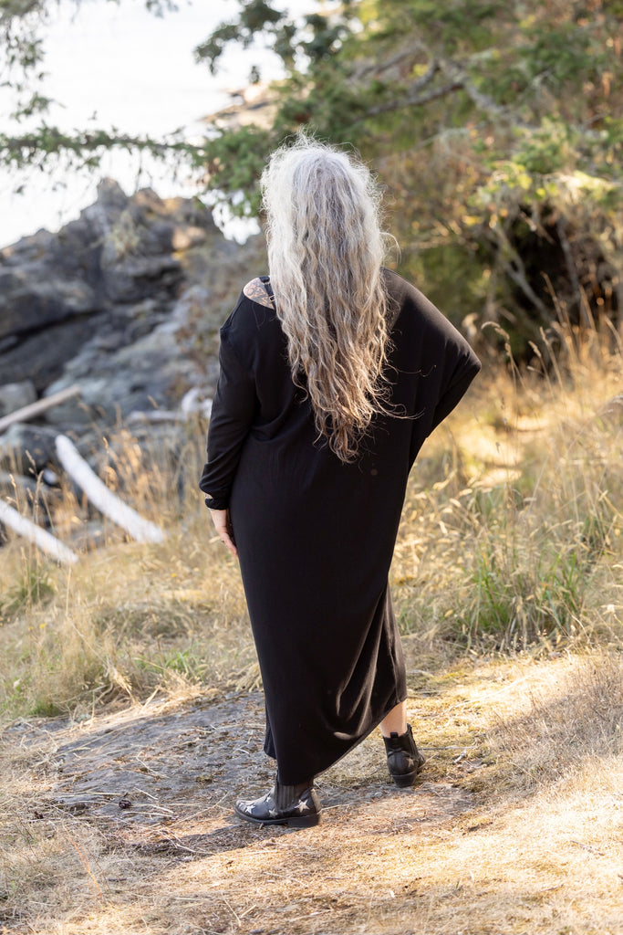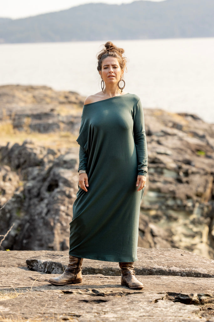 A beautiful assymetrical piece. The Assam Dress is perfect for those days you want something easy to grab that's drapey and stylish. Slide the neckline off the shoulder for a sassy look.