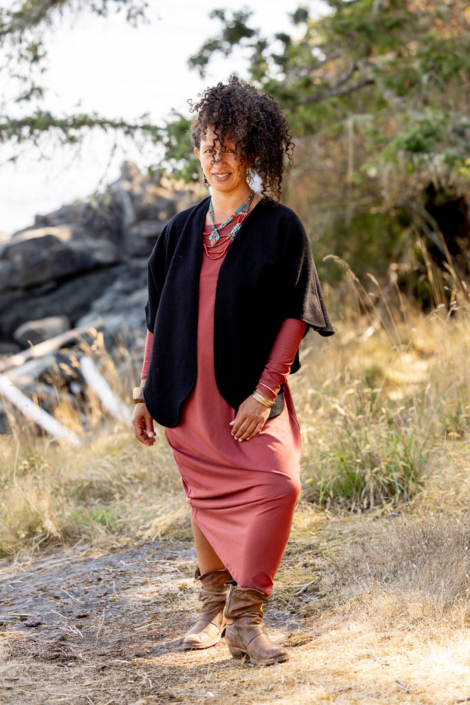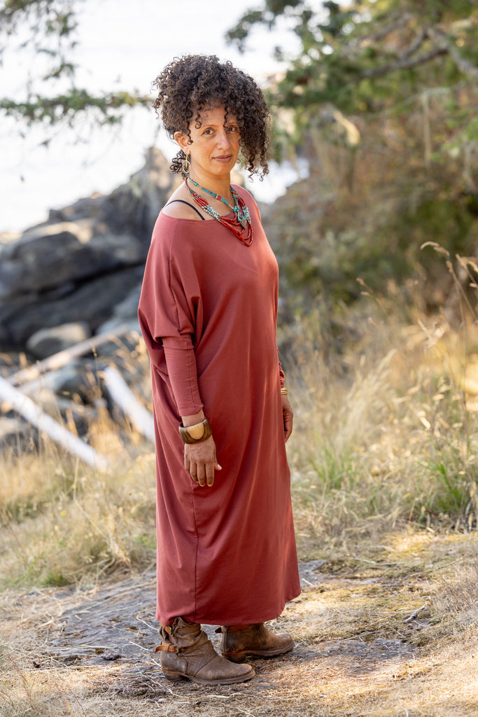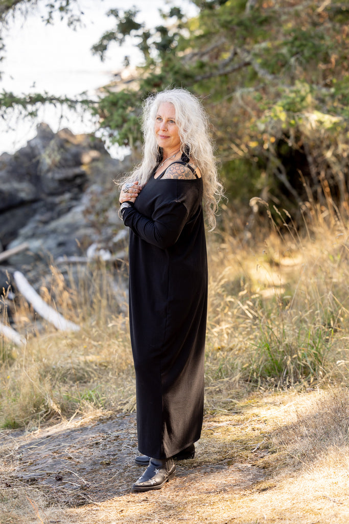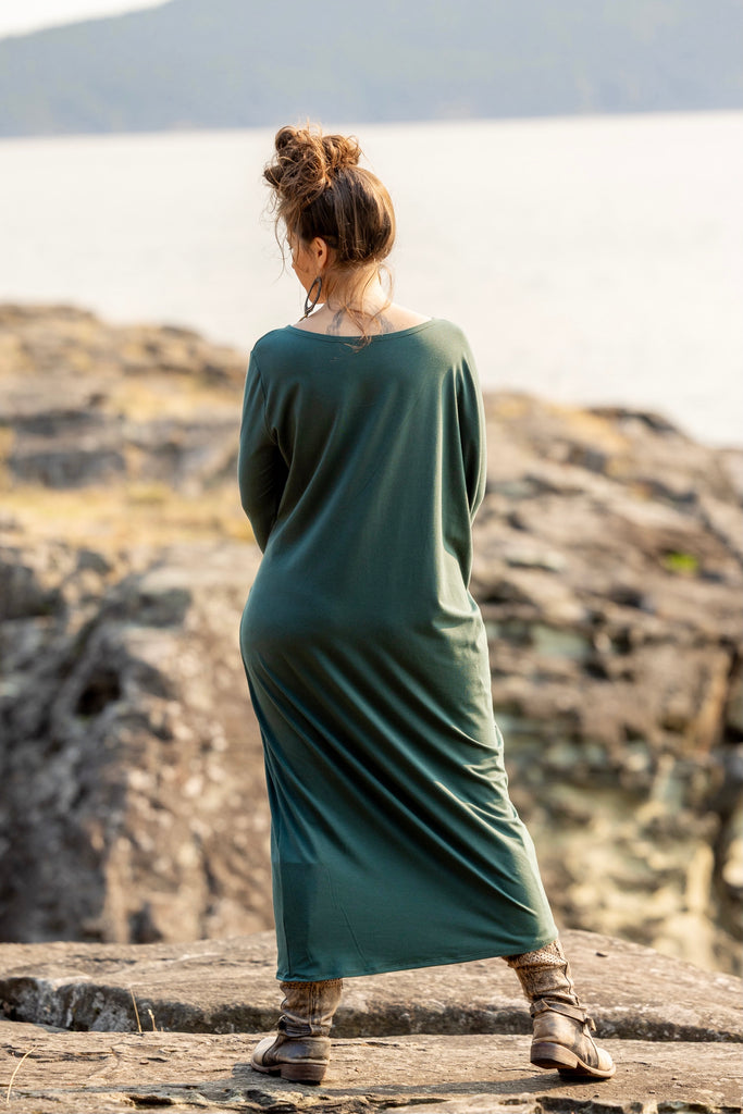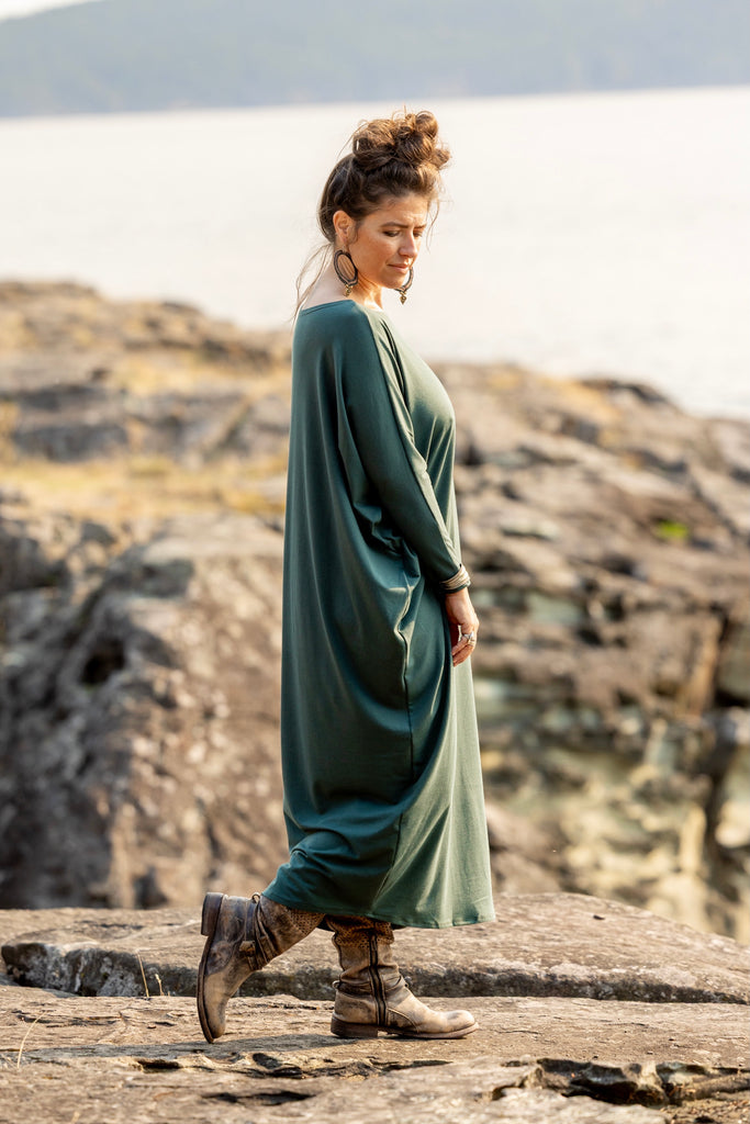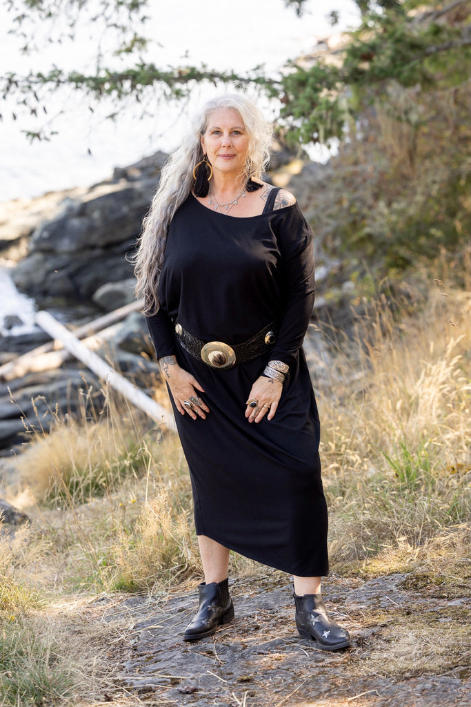 A beautiful assymetrical piece. The Assam Dress is perfect for those days you want something easy to grab that's drapey and stylish. Slide the neckline off the shoulder for a sassy look.