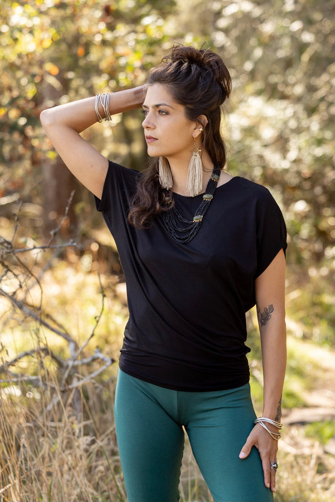 Just an awesome shirt! Wear it centered or let it fall off one shoulder. This shirt is a first grab when you need that perfect top that goes with everything.